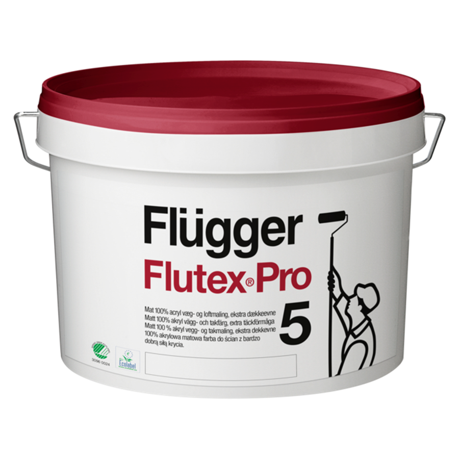 Flutex 5 von Flügger ist eine Wand- und Deckenfarbe auf Acrylbasis mit mattem Finish. Mit seiner thixotropen und tropffreien Konsistenz lässt sich das Produkt besonders einfach und sauber verarbeiten. Das Ergebnis ist robuste Oberfläche, von der normale Verschmutzungen problemlos abgewaschen werden können. Flutex 5 besitzt eine gute Deckkraft und sorgt für ein mattes und gleichmäßig wirkendes Finish.